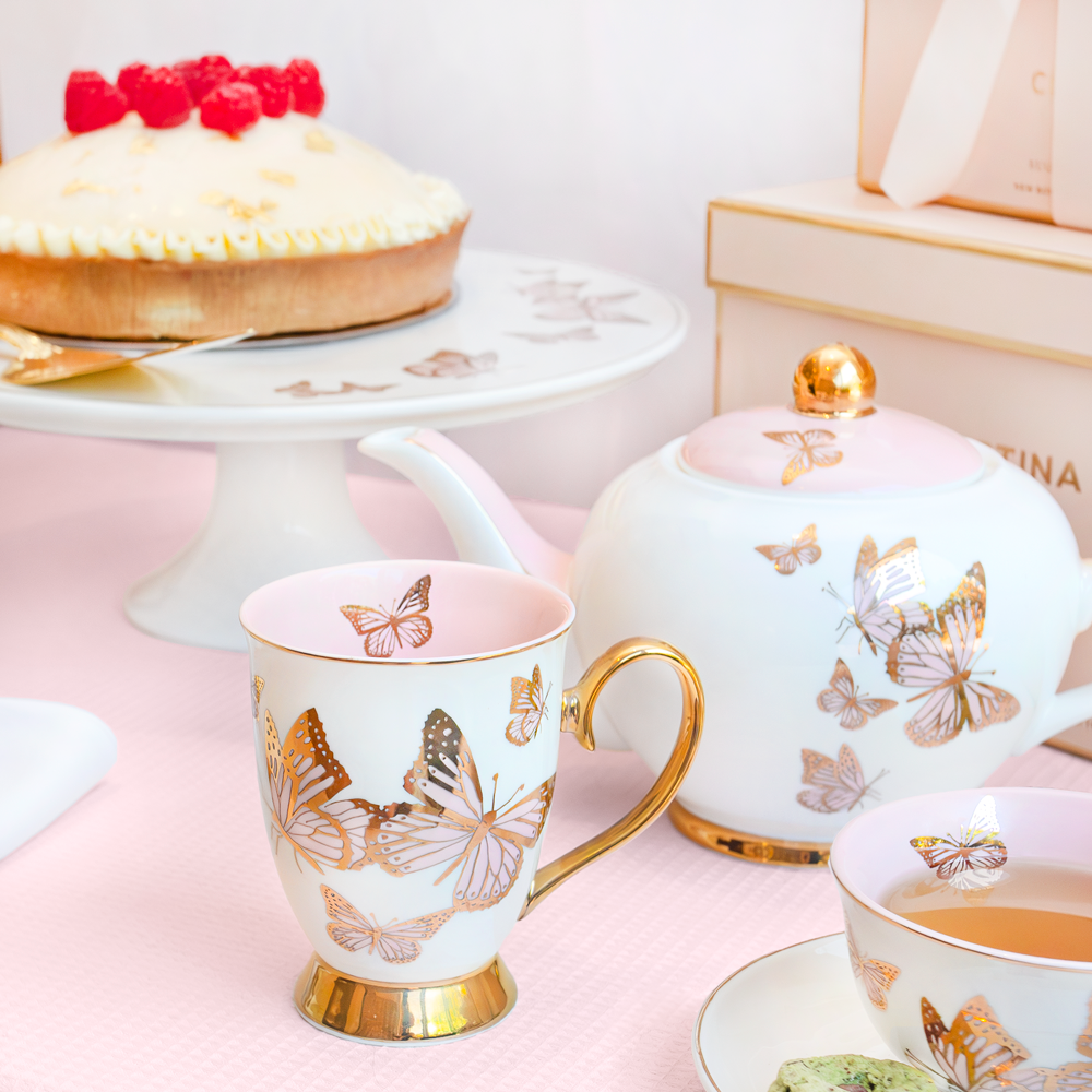 The Chrysalis collection is inspired by the beautiful metamorphosis of the caterpillar transforming into a butterfly. With glittering 24ct gold details, this limited edition collection is packaged in signature keepsake boxes; perfect for Mother’s Day, birthday, or special occasion gifting. Designed to coordinate with an array of accessories from the Cristina Re High Tea Collection, you will be sure to inspire and delight your guests.