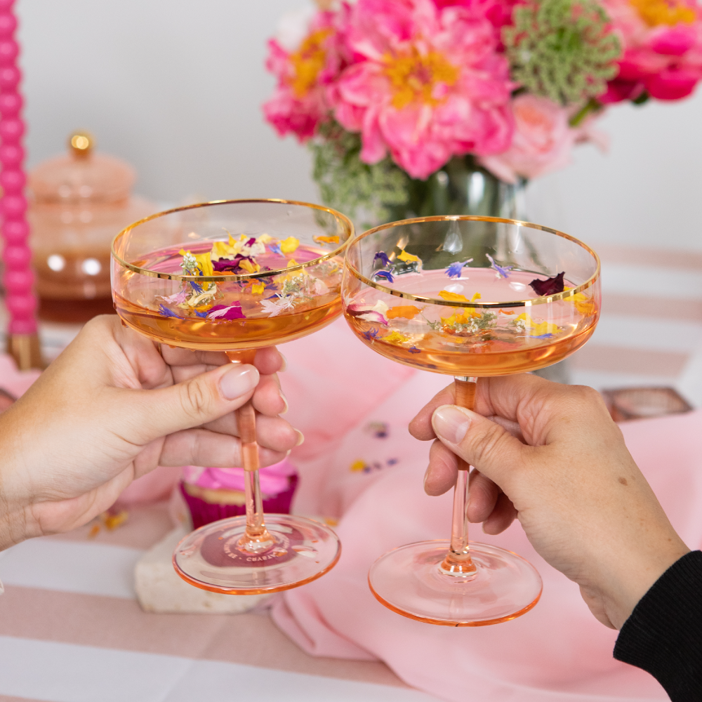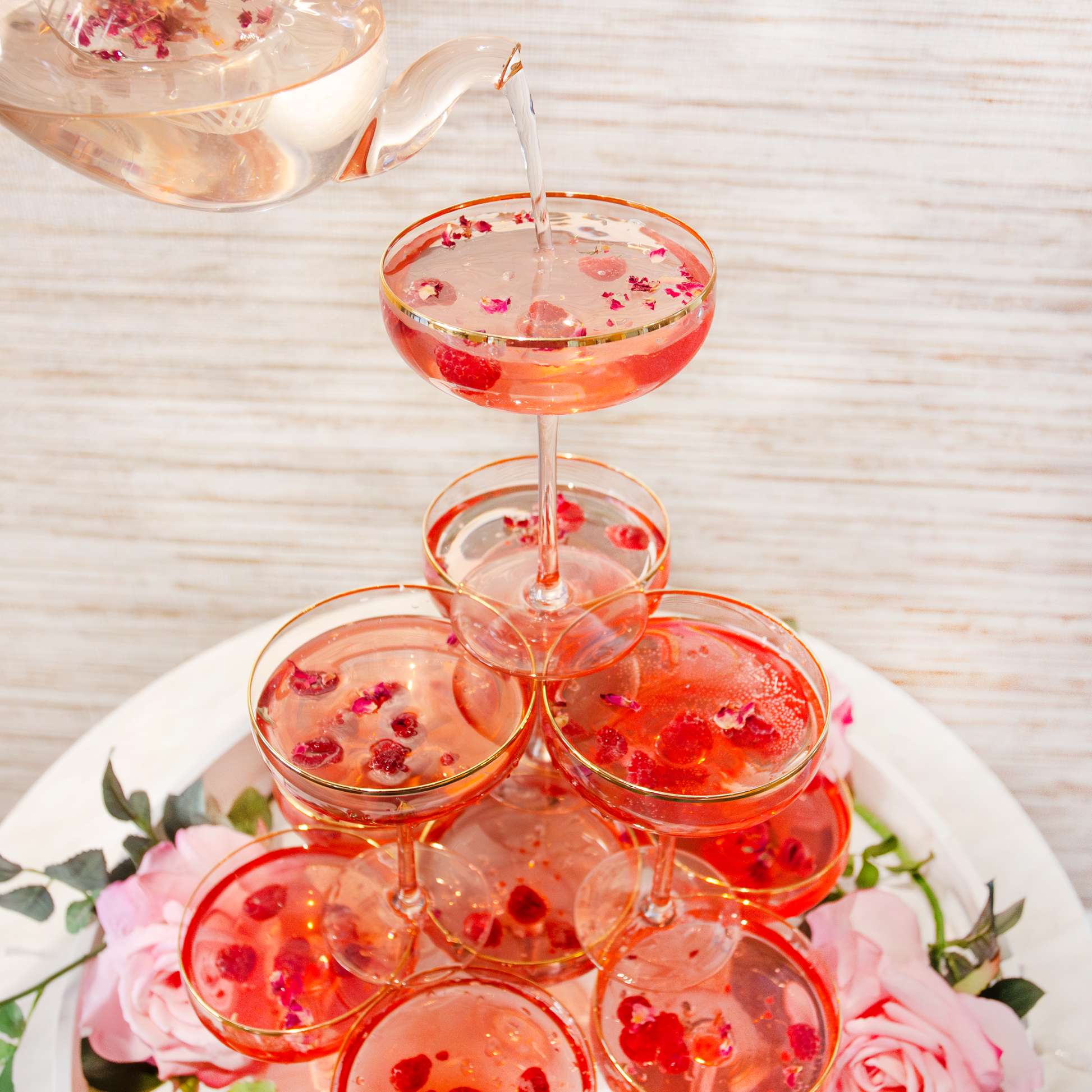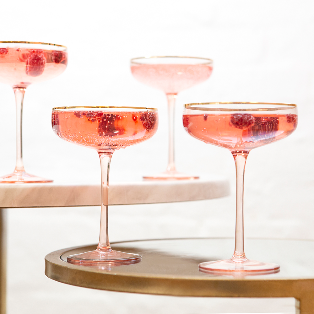 Entertain in style with this this luxury range of vintage-inspired fine crystal glassware. Featuring glamorous 24ct gold finishes, the Rose Glass collection is a celebration of the classic glamour of High Tea. Available in coordinating Champagne Flutes, Coupe Glasses, Wine Glasses, and Tumblers.