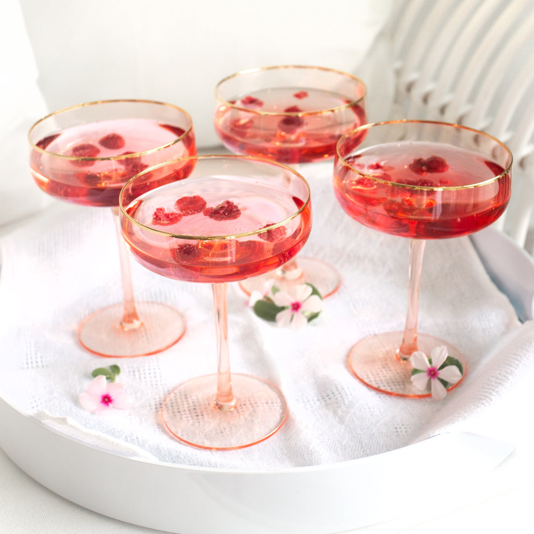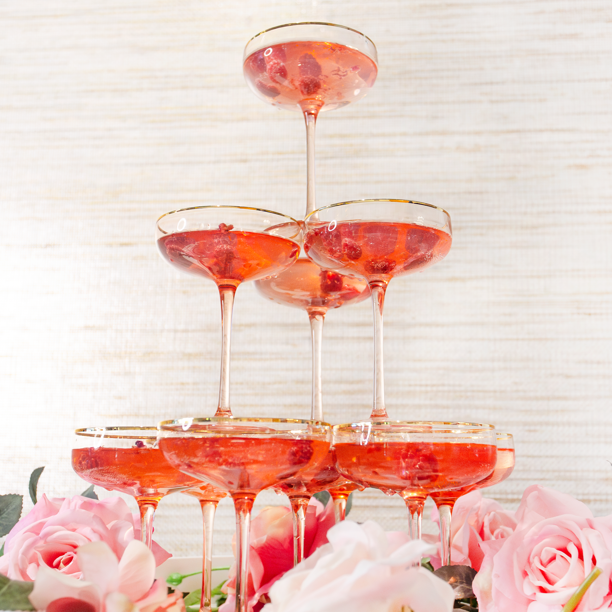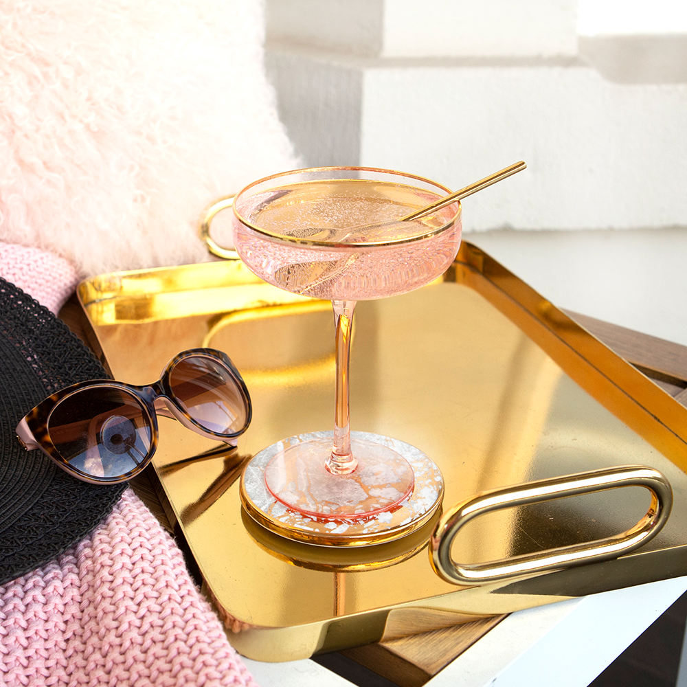 Entertain in style with this this luxury range of vintage-inspired fine crystal glassware. Featuring glamorous 24ct gold finishes, the Rose Glass collection is a celebration of the classic glamour of High Tea. Available in coordinating Champagne Flutes, Coupe Glasses, Wine Glasses, and Tumblers.