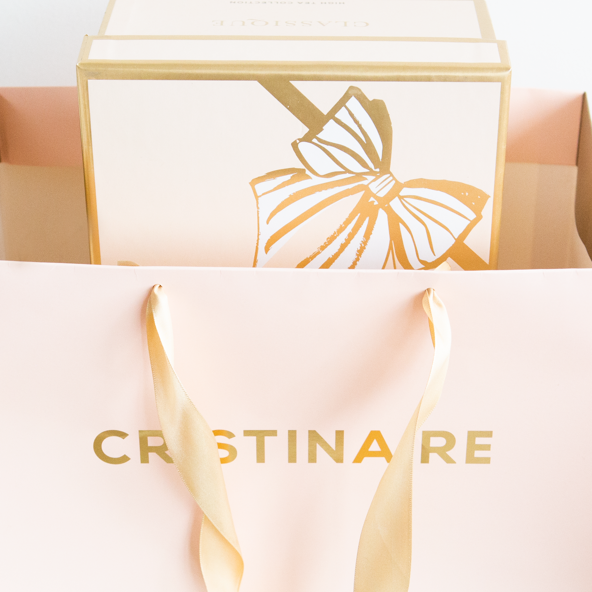 Give the perfect Cristina Re gift to your special loved one with our range of designer Gift Bags. Available in two sizes featuring satin ribbon handles and metallic gold finishes for that extra touch of luxury. Designed to carry all your favourite accessories in style from the Cristina Re High Tea Collection.
