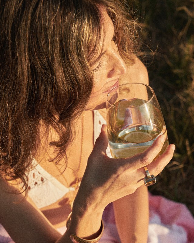 The Estelle Crystal Glassware Collection is a true expression of artistry, originality and luxury. Featuring an ultra-contemporary design with elegant sinuous curves in the finest hand-blown crystal with gold lustrous finishes. Available in a variety of vessels to enjoy wine, champagne and cocktail beverages, as well as decadent desserts in style.